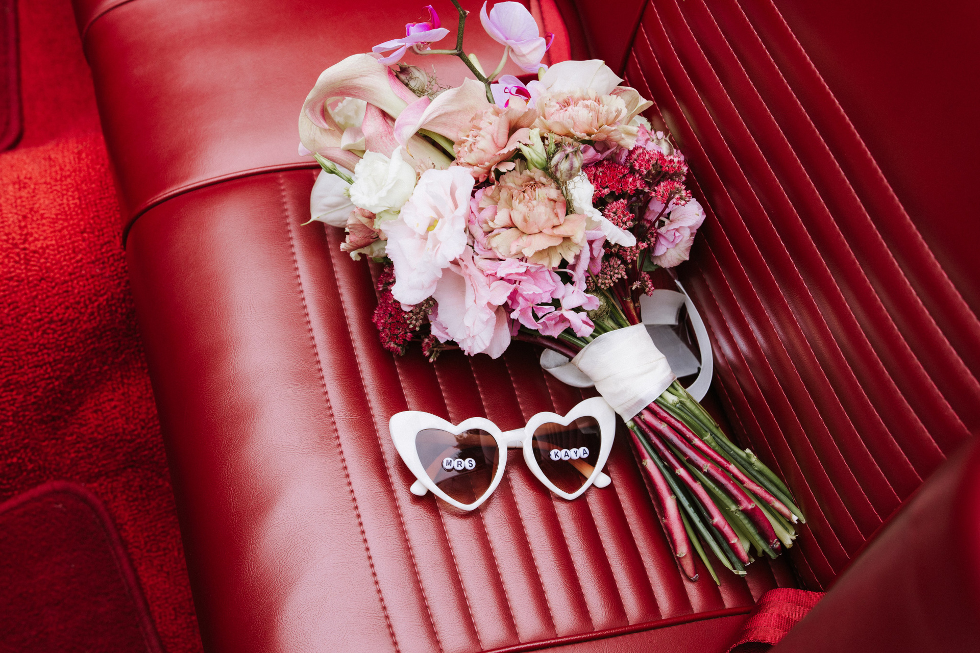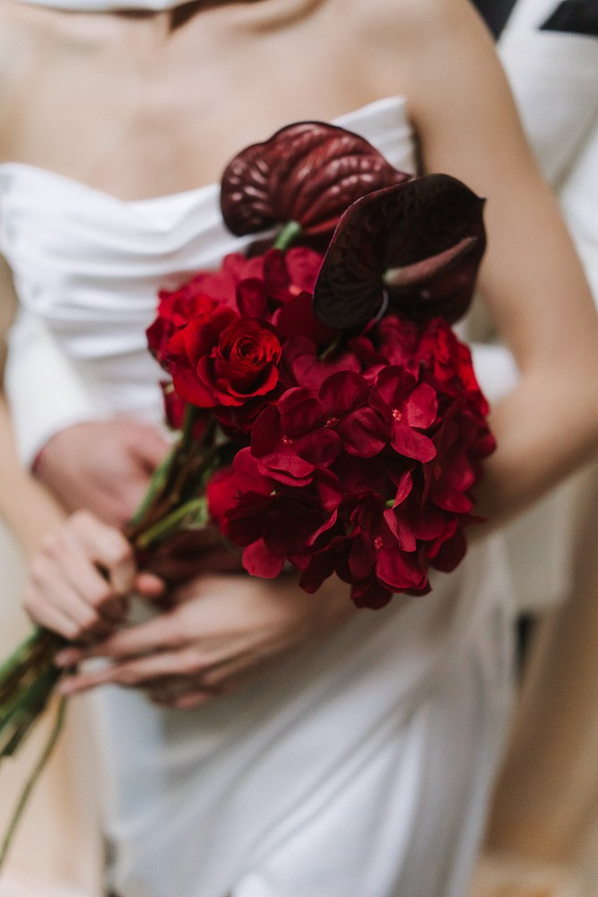 Mutige Farben und unerwartete Kombinationen: Rot mit Violett, Gelb mit Blau. Für Bräute, die auffallen und einen Farbakzent setzen möchten.