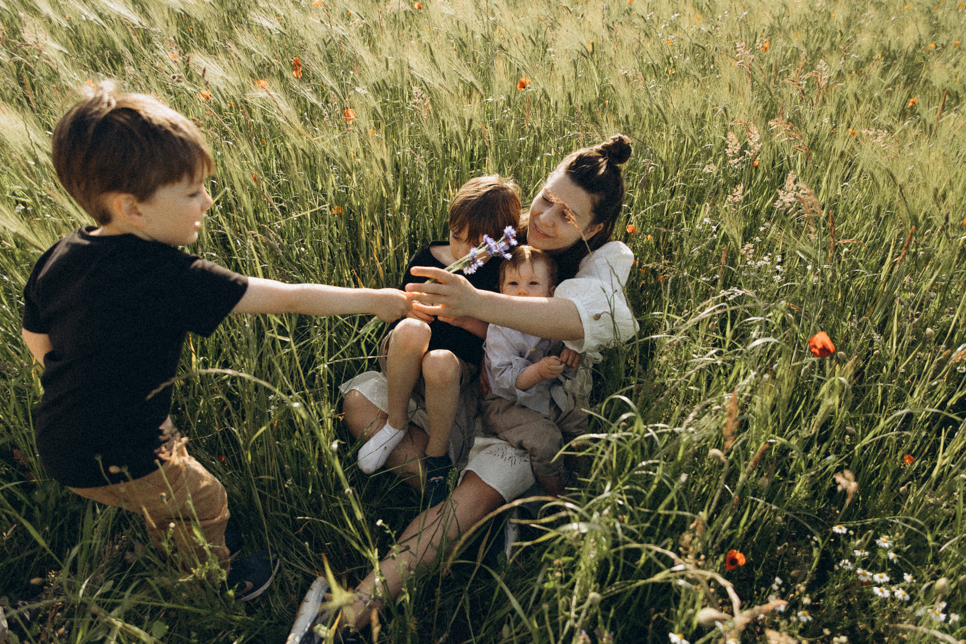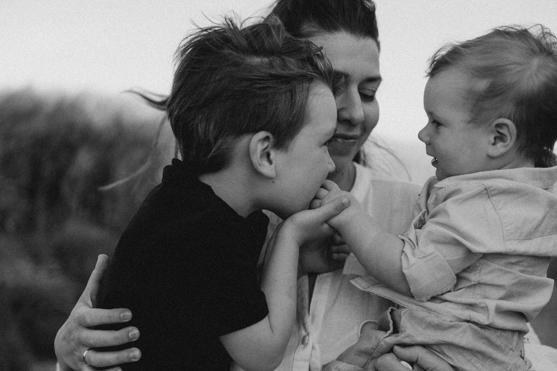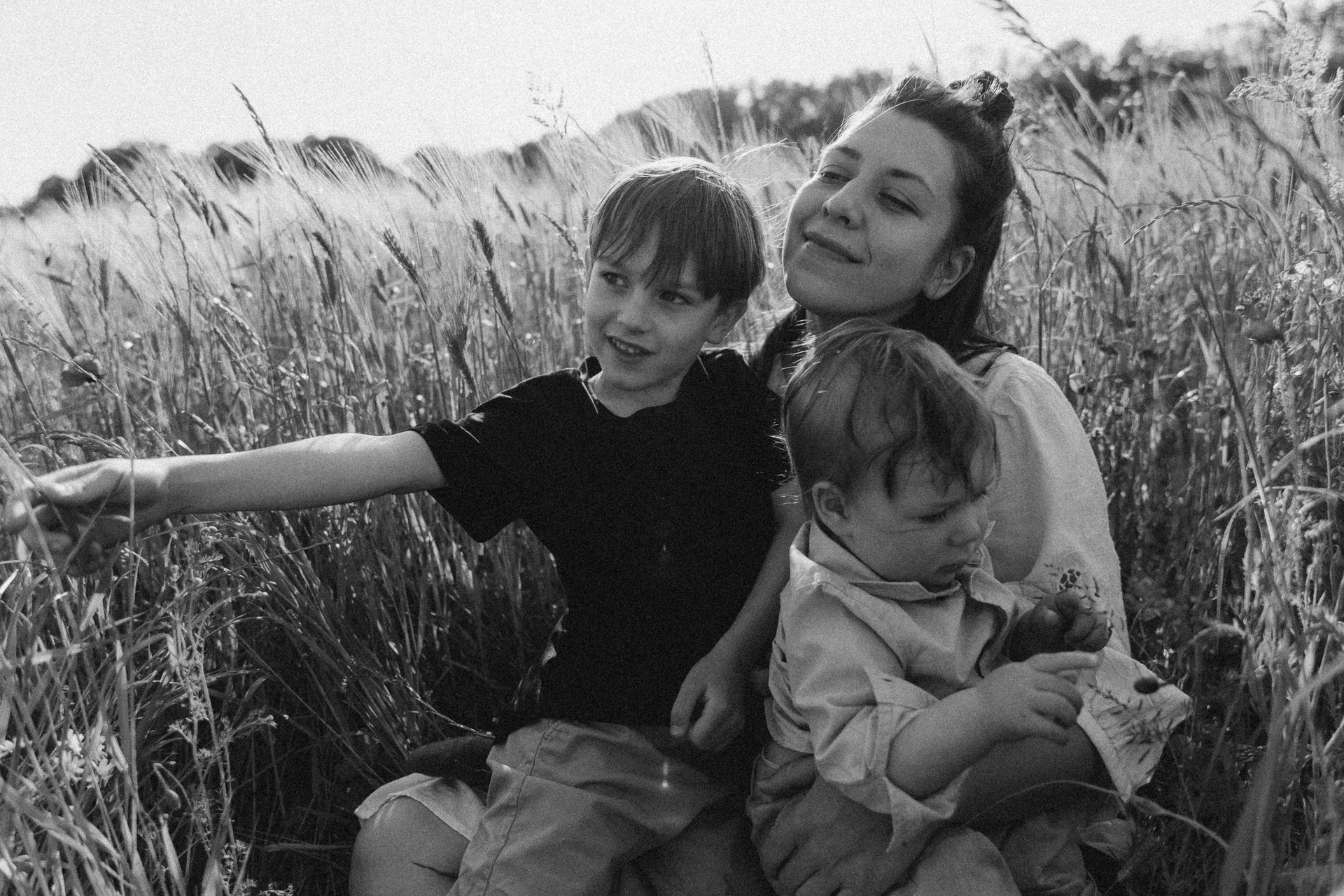 Mama und ihre zwei bezaubernden Töchter in einer familiären Fotosession