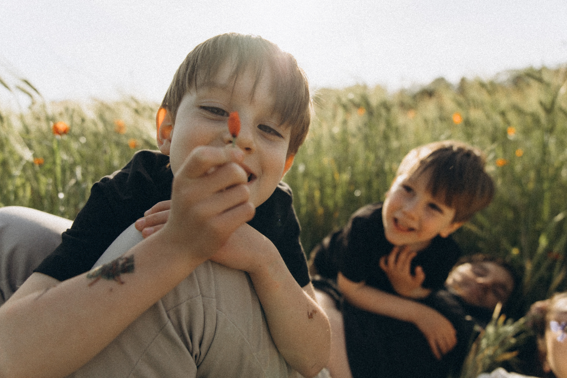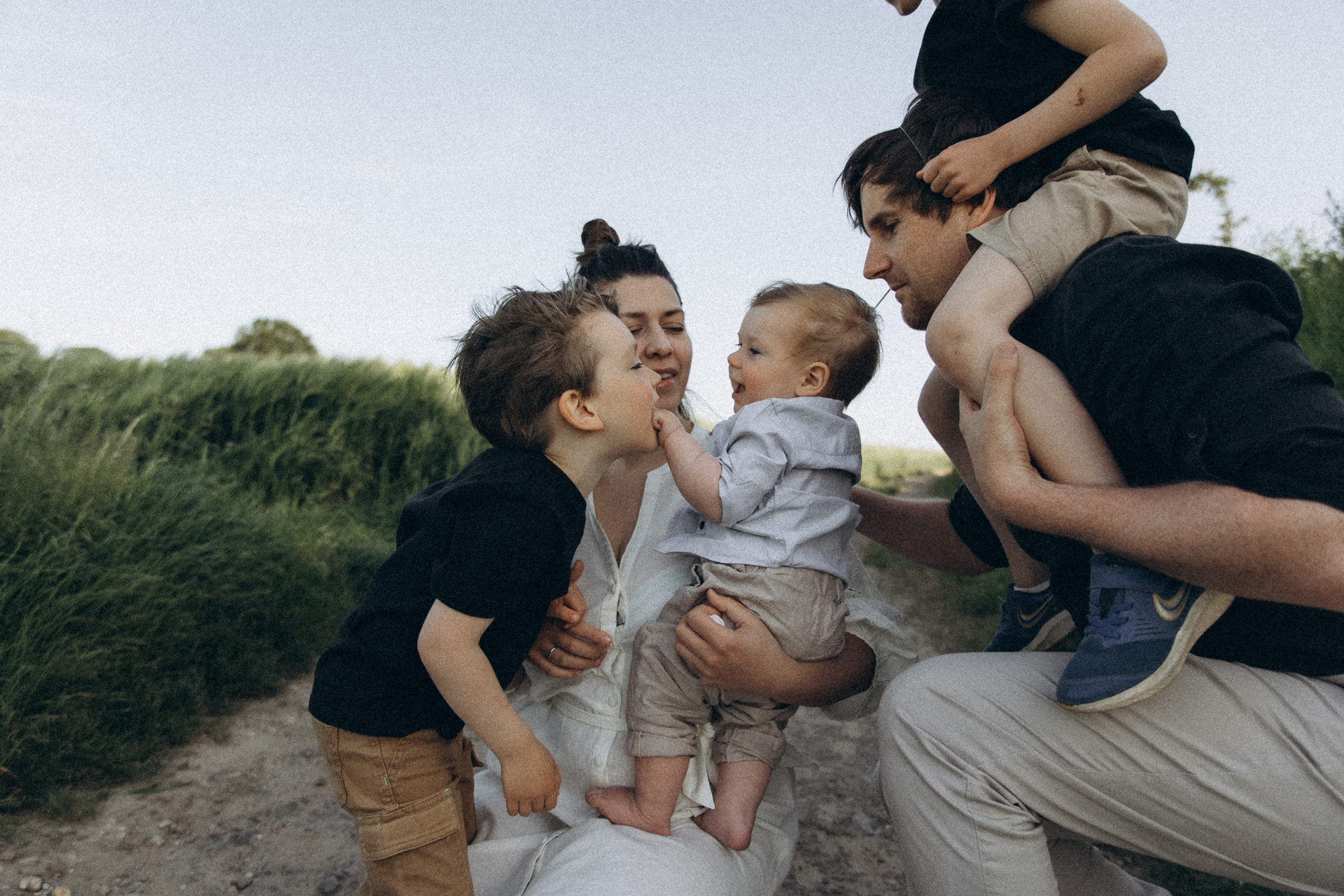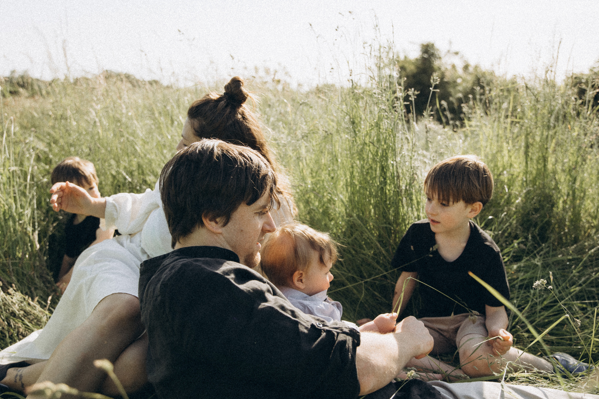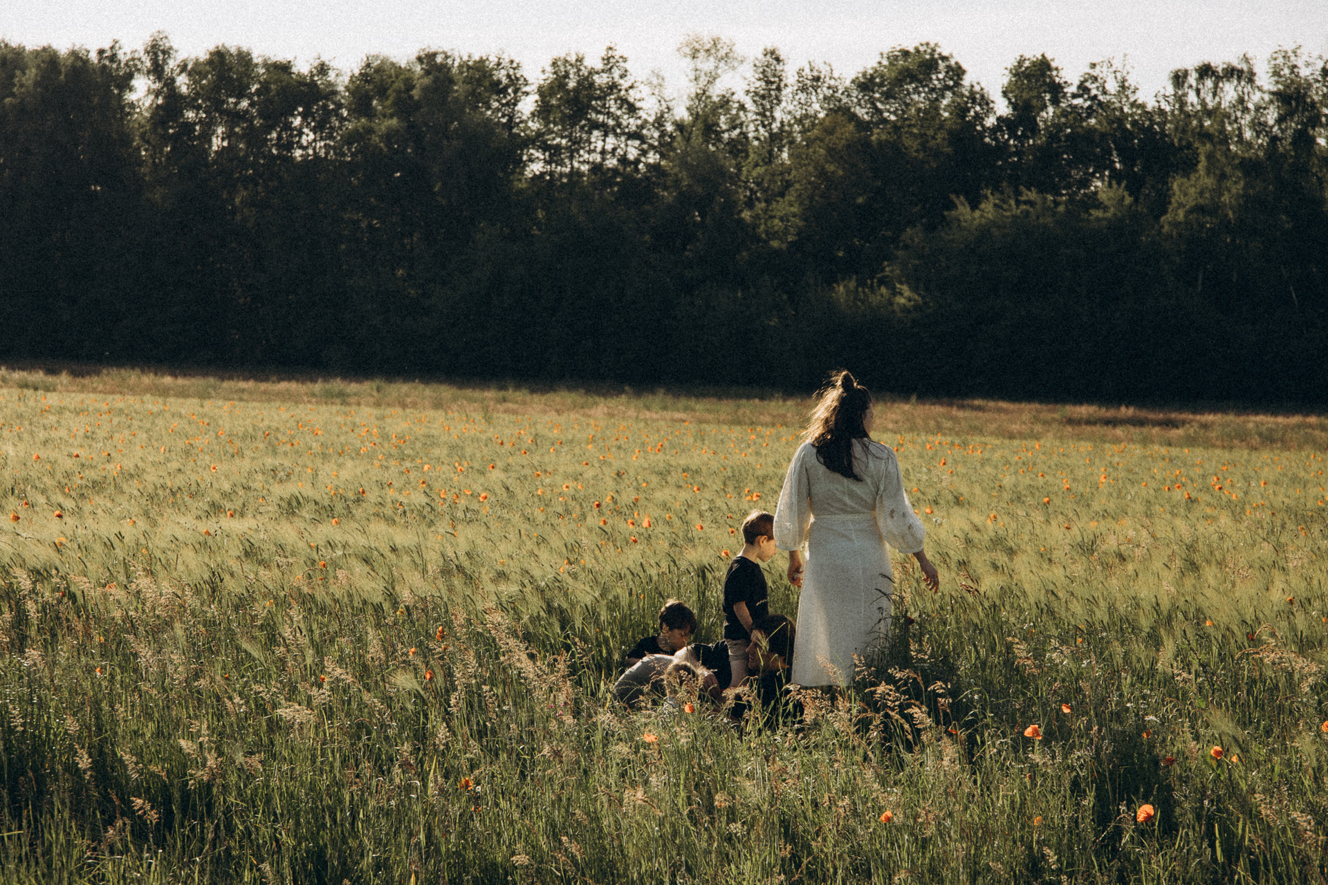 Mama und ihre zwei bezaubernden Töchter in einer familiären Fotosession
