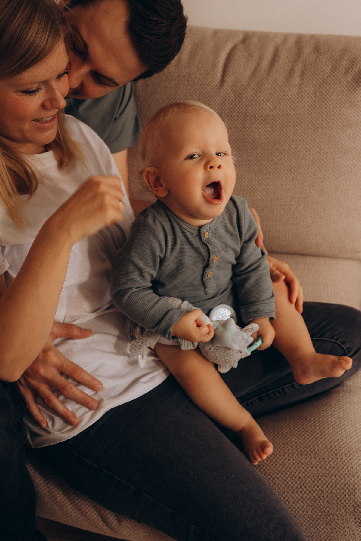Mama und ihre zwei bezaubernden Töchter in einer familiären Fotosession