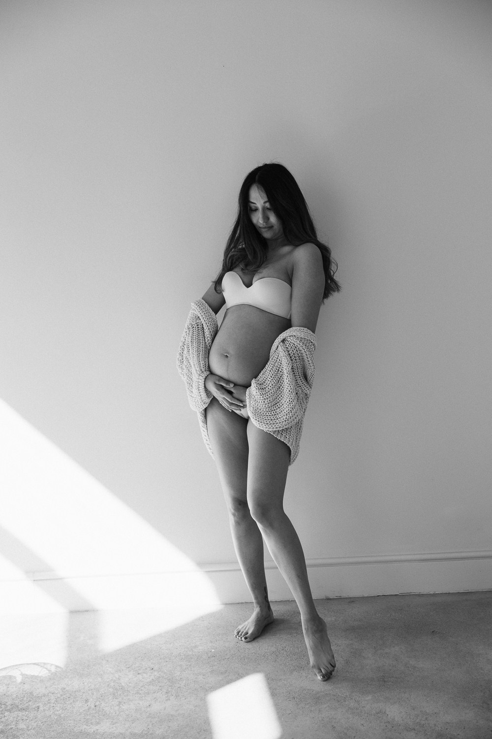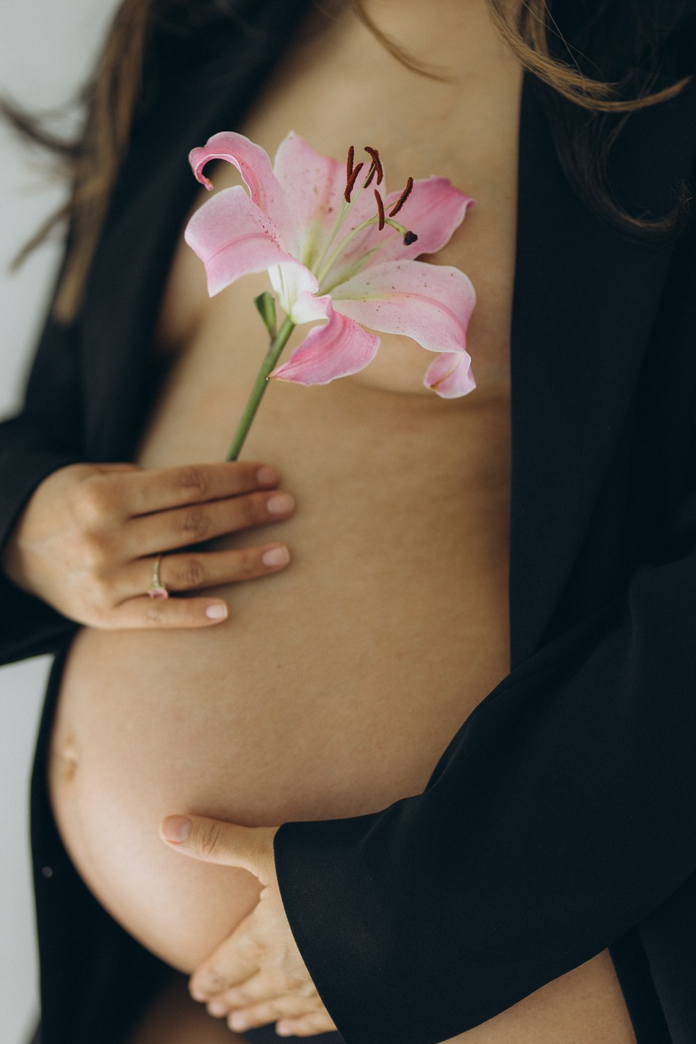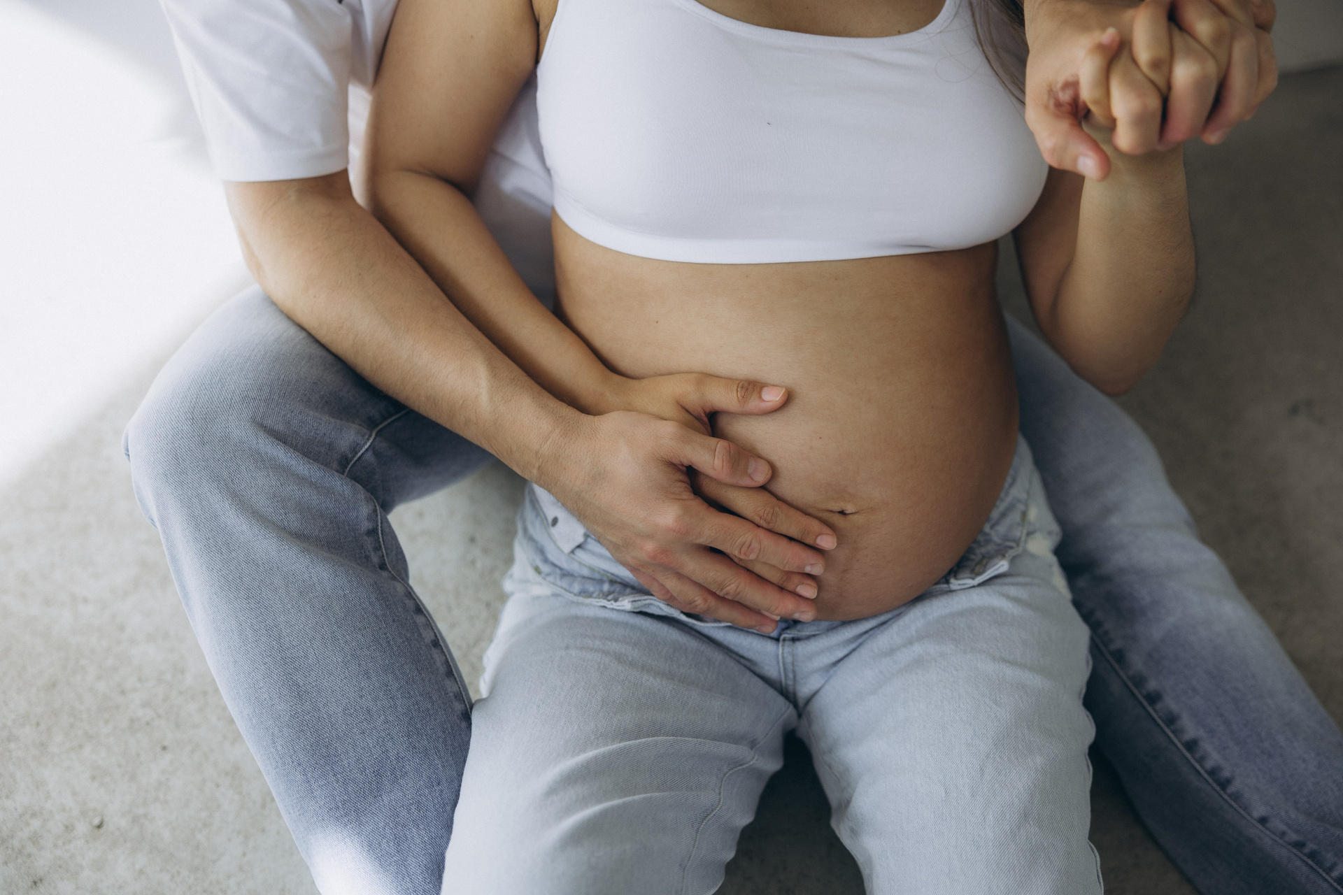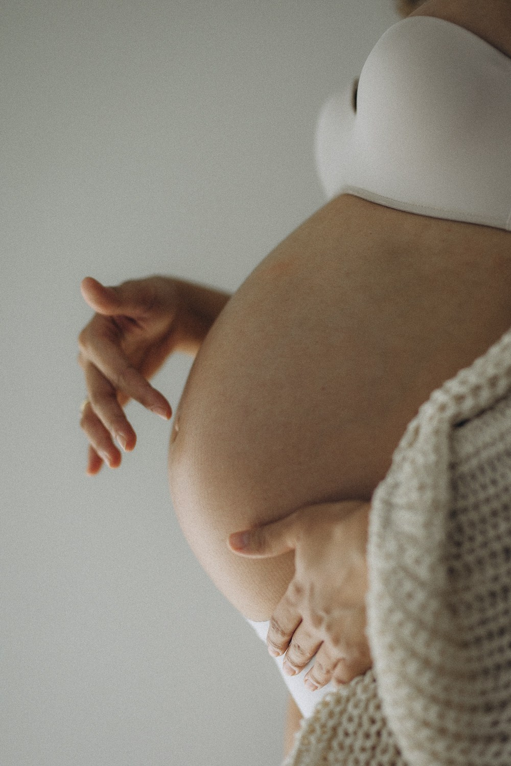 Babybauch beim Sonnenuntergang