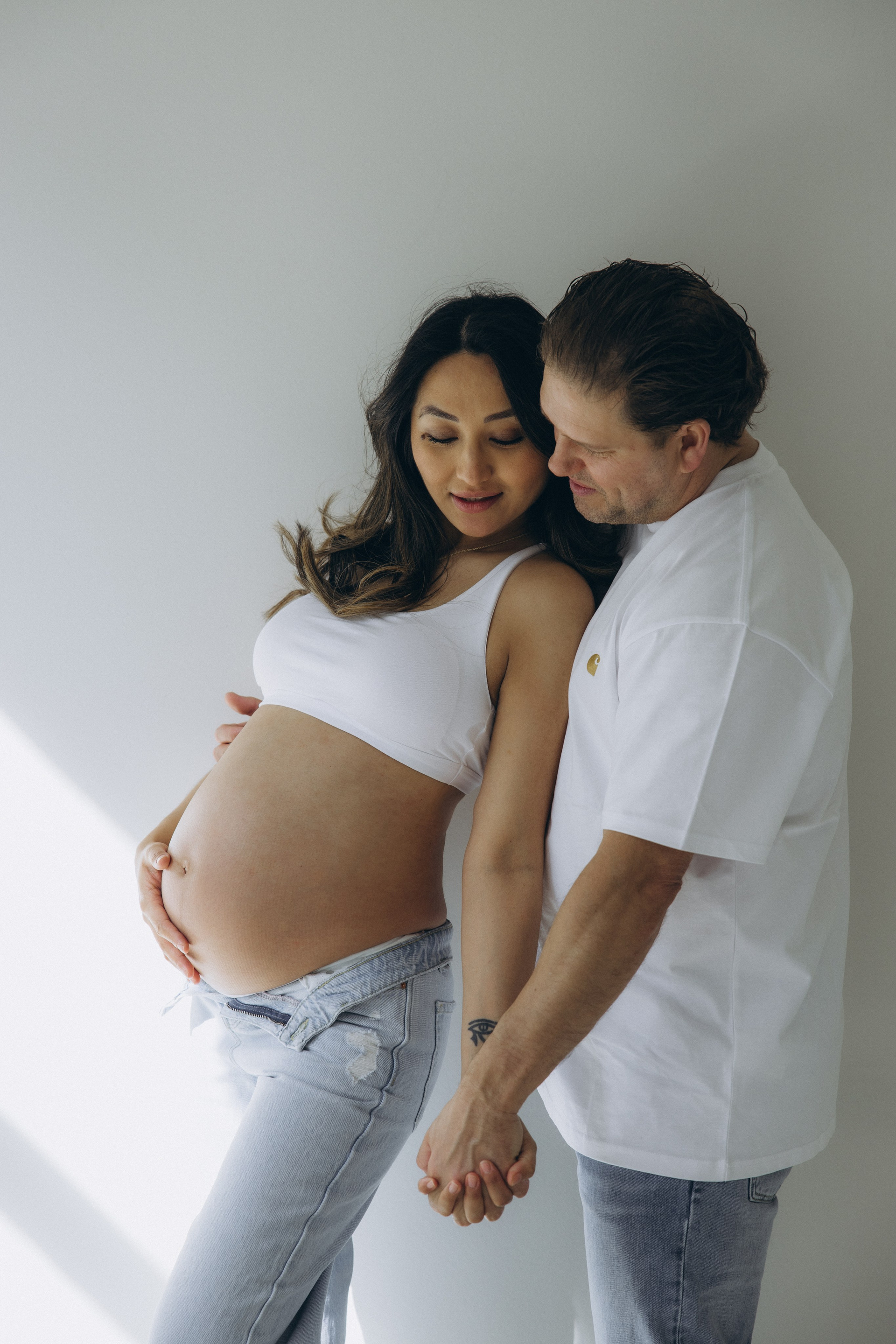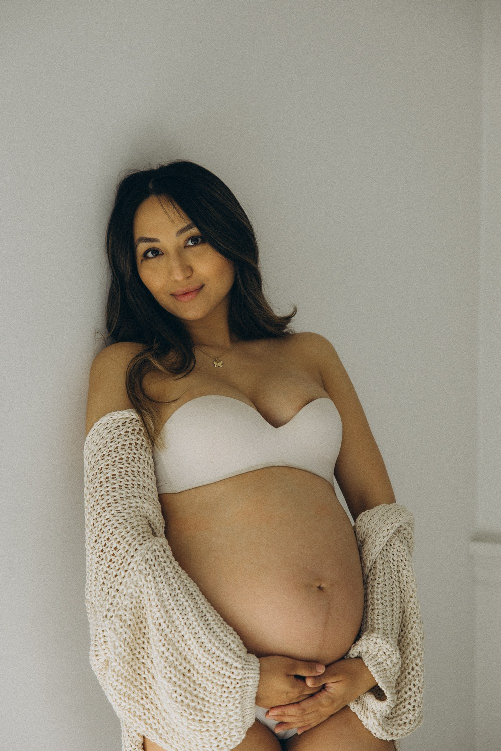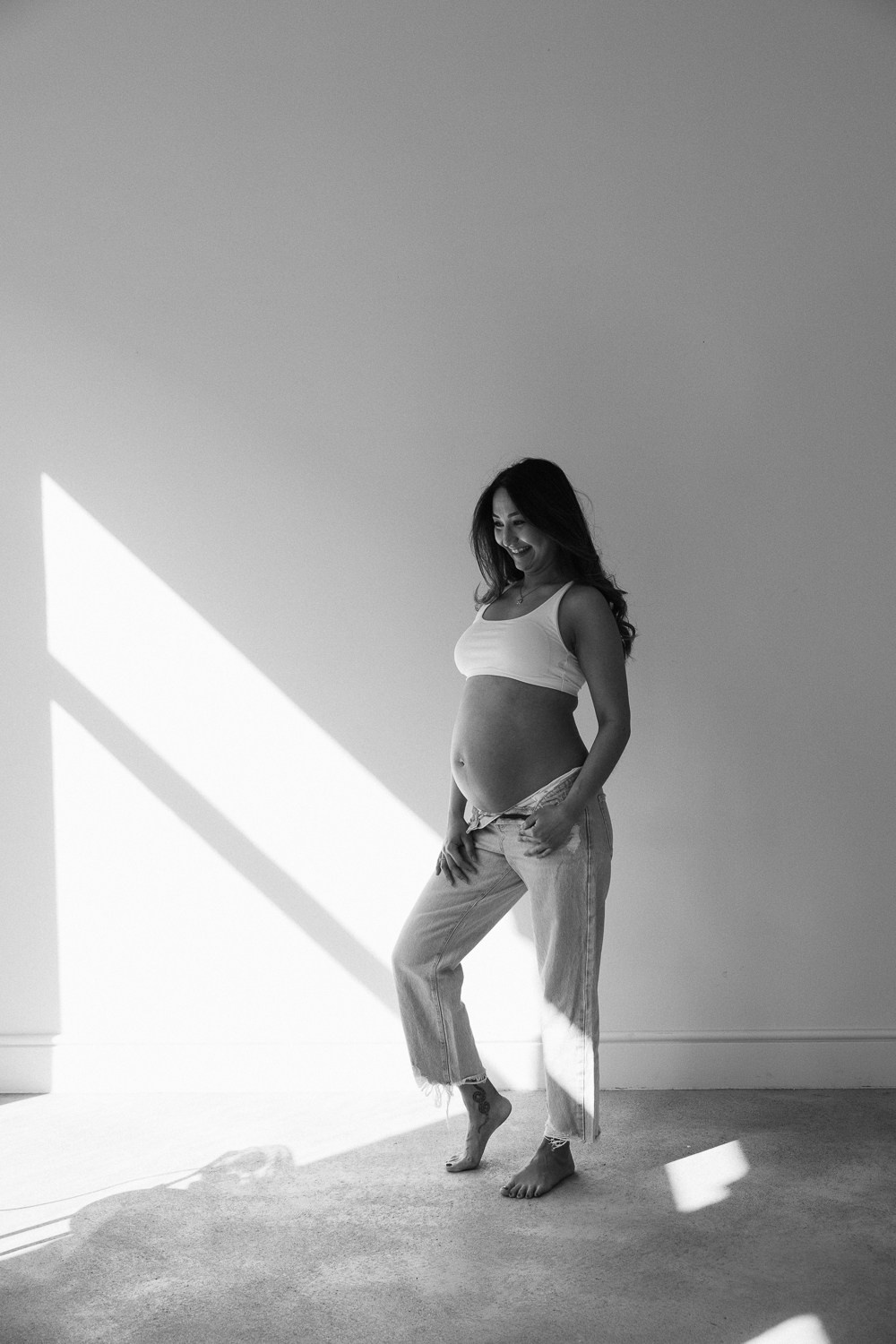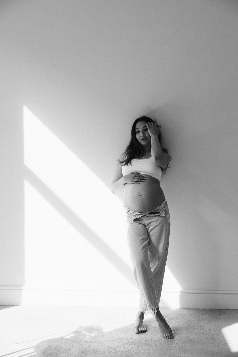Babybauch beim Sonnenuntergang