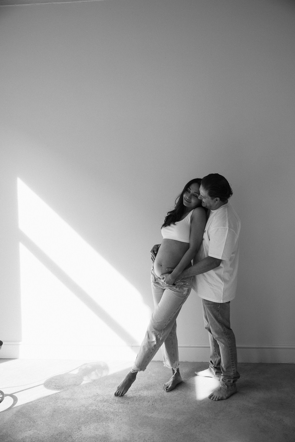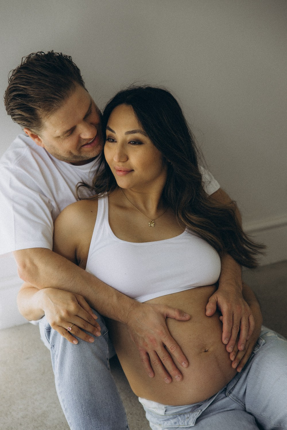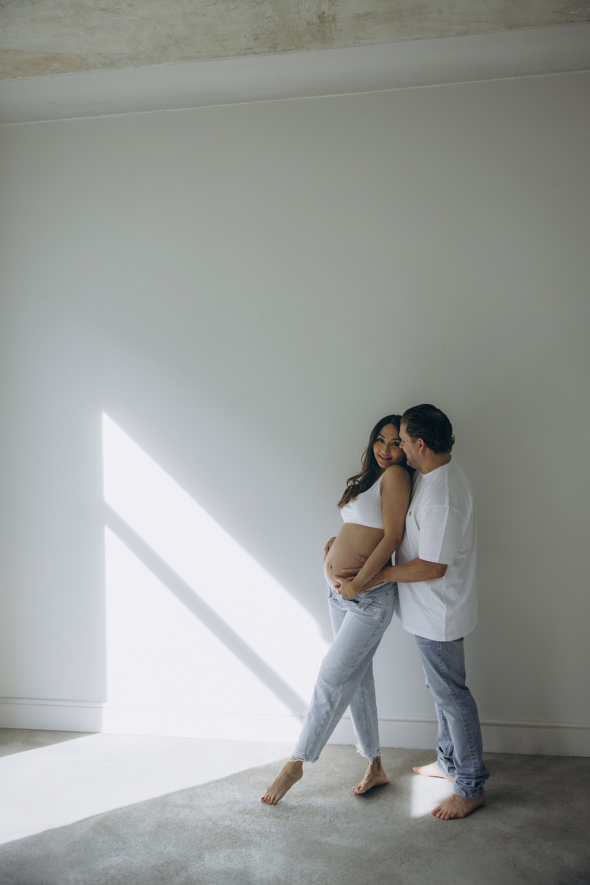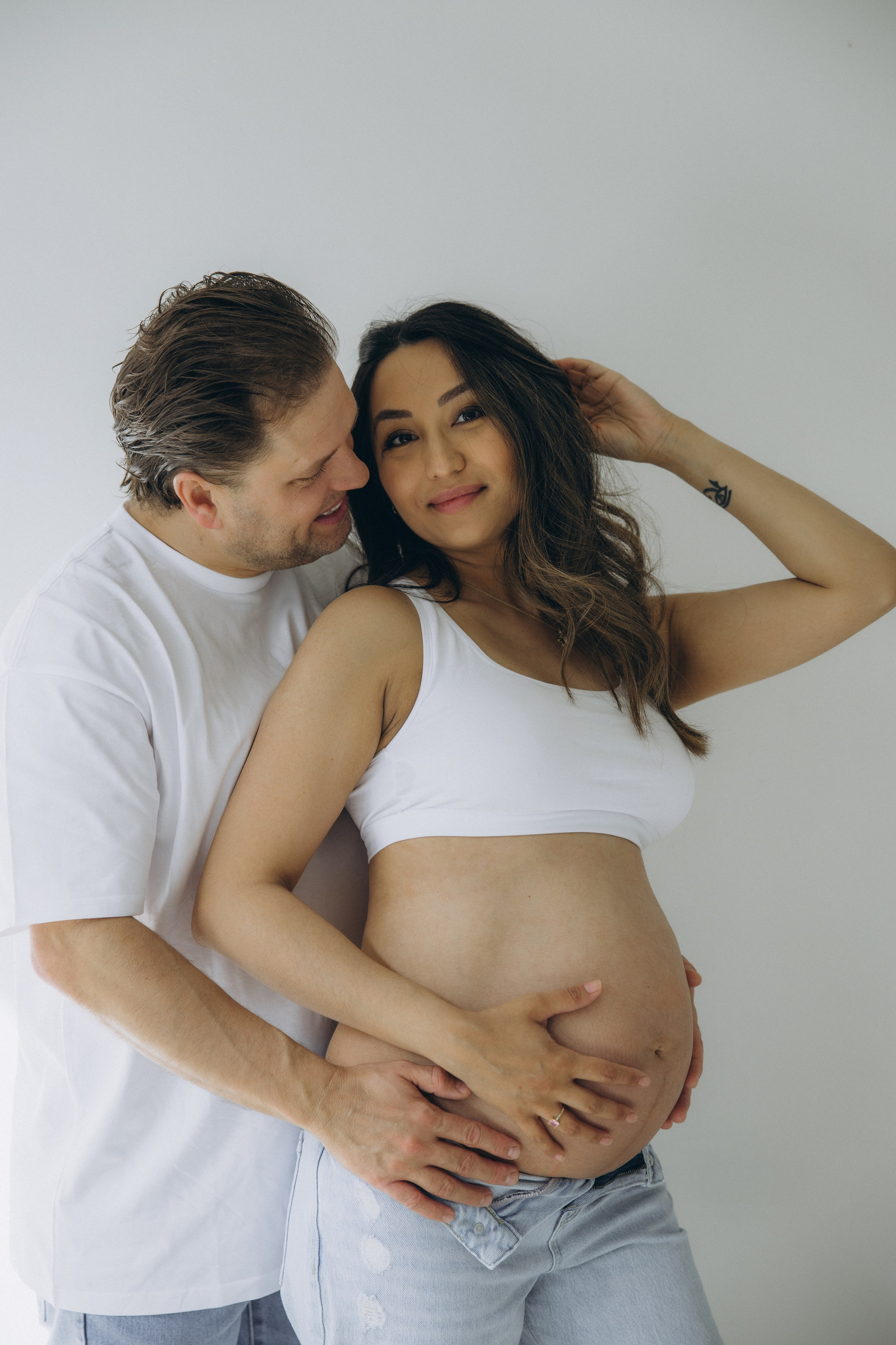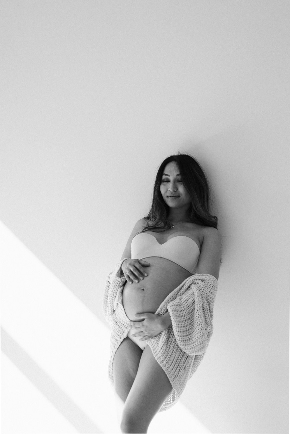 Babybauch beim Sonnenuntergang
