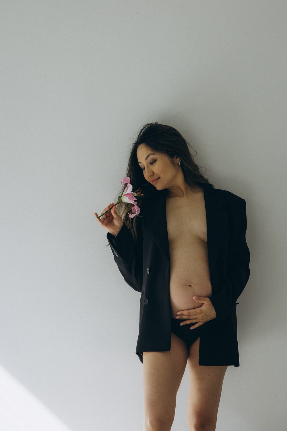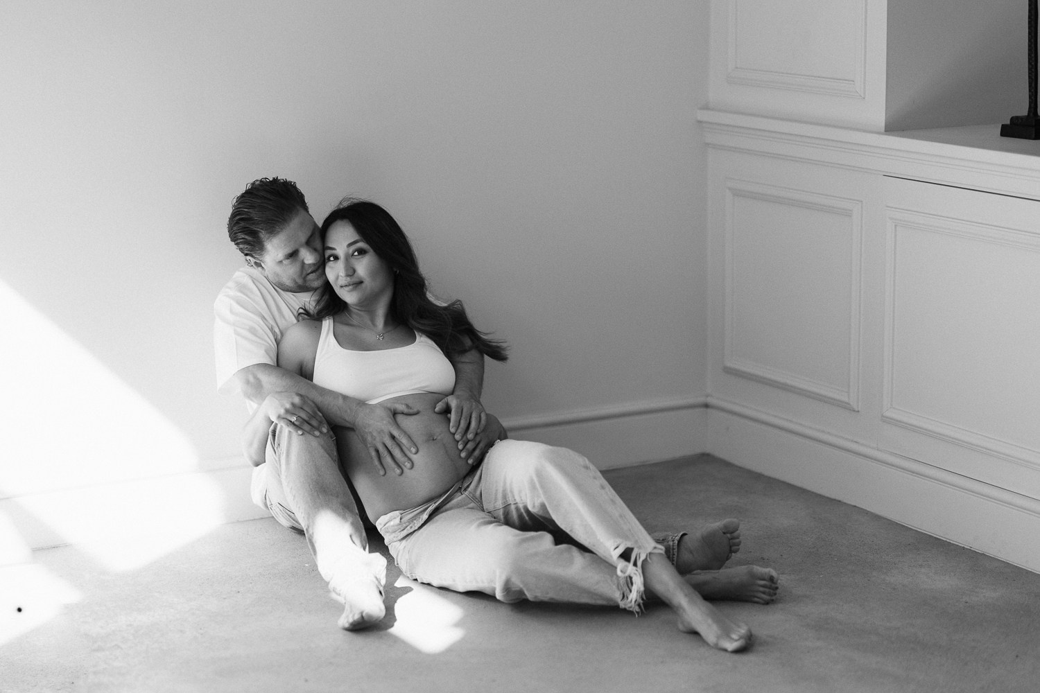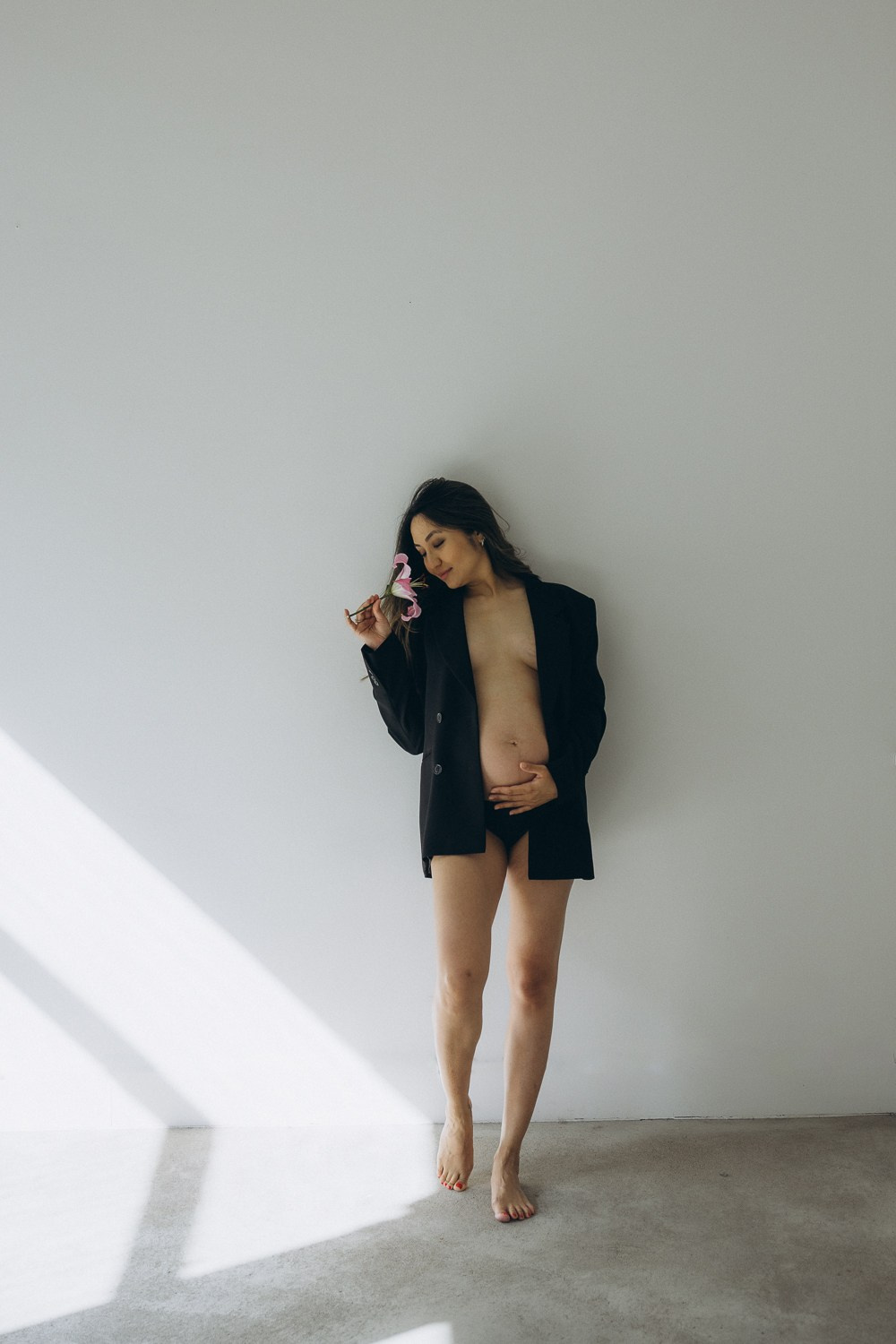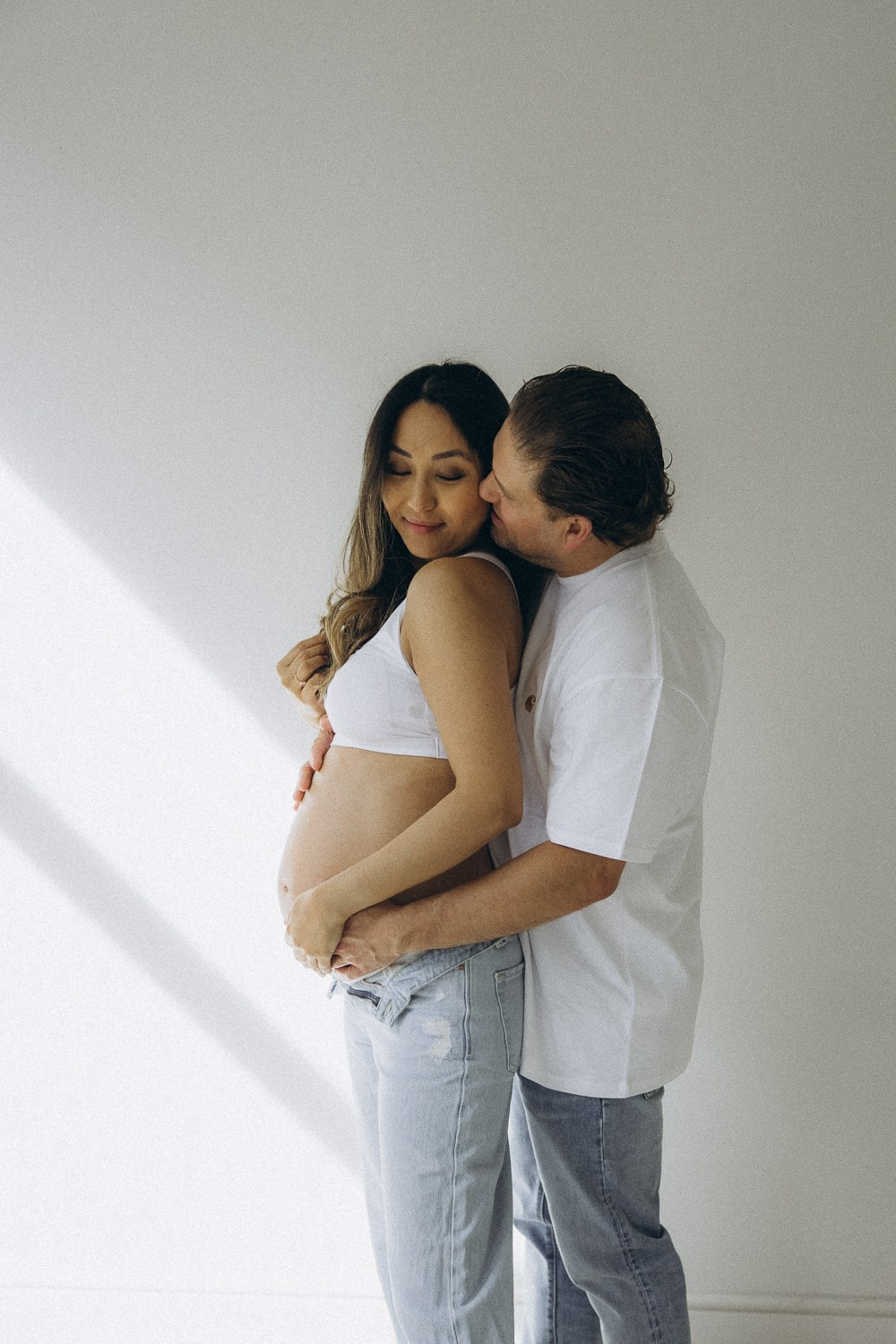 Babybauch beim Sonnenuntergang